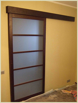 Мы покупали в магазине дверей возле стоматологии на кукуевицкого просто дверное полотно, направляющие, механизм (ролики или как это называется) и доборную доску в цвет полотна, чтобы сверху прикрыть всю эту "красоту". Там у них для примера установлено все было, можно было посмотреть как все устроено. Но это было 6-7 лет назад. Устанавливали ремонтники, что делали нам ремонт.  |