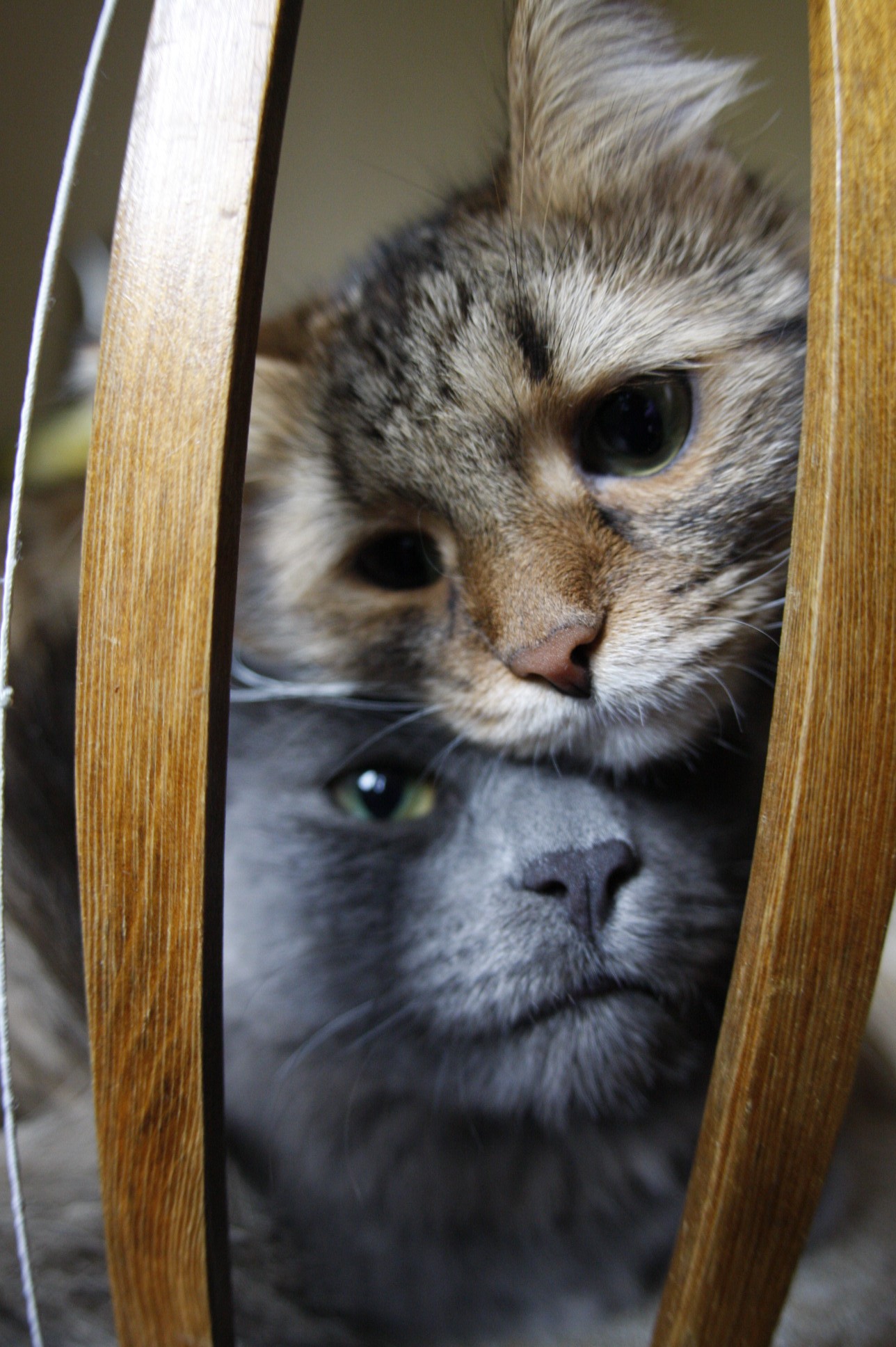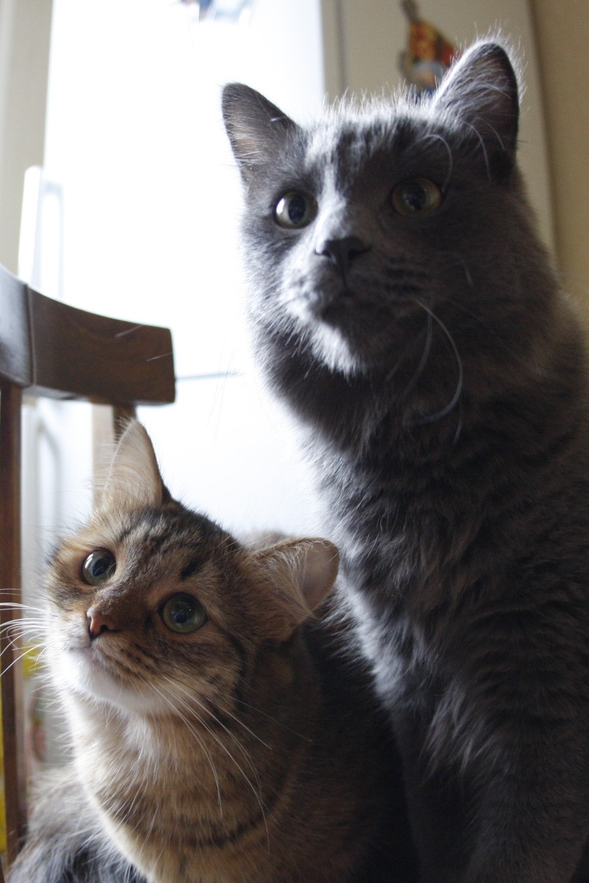 У нас с мужем была мечта - пожениться и взять обязательно двух котов/кошек. Я мечтала, потому что всю жизнь коты были рядом (у мамы до сих пор две кошки дома), а муж - потому что никогда не было, но ему всегда хотелось с детства (у свекрови аллергия). Так получилось, что мы еще немного пожили с мамой мужа, так мне бывало очень-очень тоскливо без кошек в доме. Совсем непривычно и пусто. Воооот, а когда, наконец, въехали в собственную квартиру, первым делом привезли кошечку. Въезжали 30 декабря, потому кошка получила кликуху Мишура, в миру Шурка. Была она очень запуганная, ела и ходила в туалет только в нашем присутствии, сиротливо жалась к ногам. Мы представили, как ей жутко одной, когда мы на работе, и взяли ей друга. Хотя собирались второго кота брать породистого, как-то не сложилось - котенок мне показался безумно красивым (как моему мужу кошка), и без него я уйти не смогла))) Так с нами стал жить еще и Гаврюша. И через некоторое время стала видна разница между ними - насколько умной, хитрой и бесстрашной стала кошка, настолько глупым и трусливым вырос кот. В целом, конечно, они умнички - ходят в лоточки, дитё не обижают. Но! Кот, простите, жрет провода и пакеты, аж за ушами трещит! А кошка любительница залезть и спать там, где точно знает, что нельзя - ибо сразу бежит, когда я приближаюсь с возмездием (мы их не бьем, просто можем согнать)))) Например, в дет.кроватке, в ящике с дет.вещами, на моих сапогах (и дерет когтями), и самое наглое - на обеденном столе. Ничего не таскает, просто спит Но мы их все равно любим и не представляем, как жили бы без них ![]()