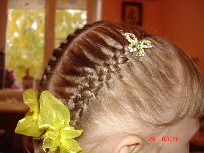 . Я вот своей заплетала косички в садик, но не нравится мне. Красиво когда волосы просто распущены. Но они до попы почти - куда-же это распускать... В итоге подстригла по плечи - теперь просто утром расчесываемся и в садик. Красота - раньше минут 20 уходило утром на косы. Хорошо хоть второй у меня мальчик, а то пришлось бы на час раньше вставать