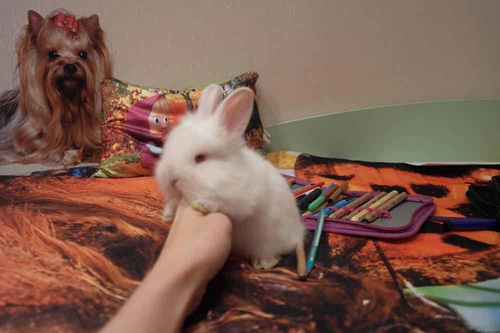 потому что у меня их 4 крольчонка еще и крольчиха а они уже все кушают еще и писают