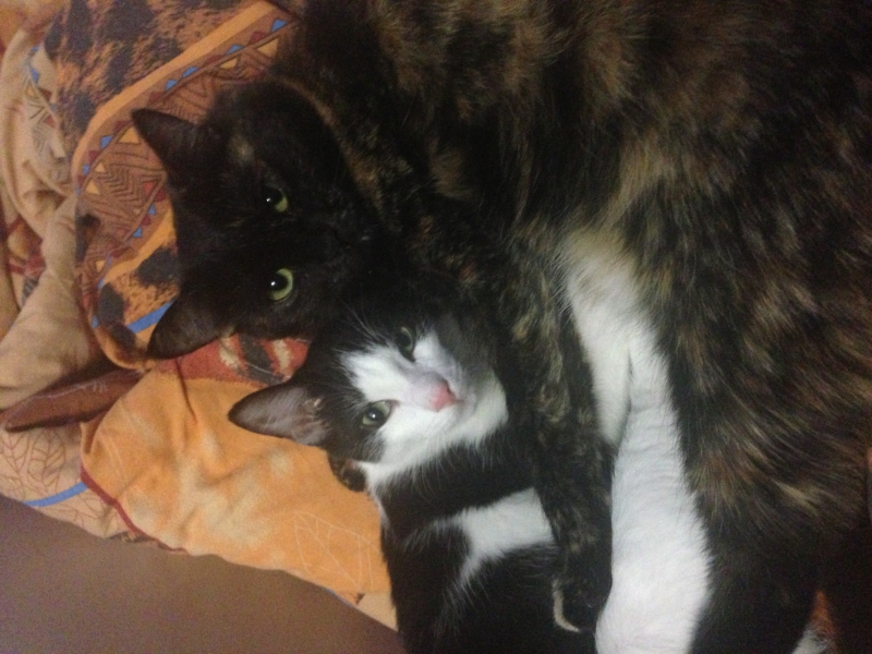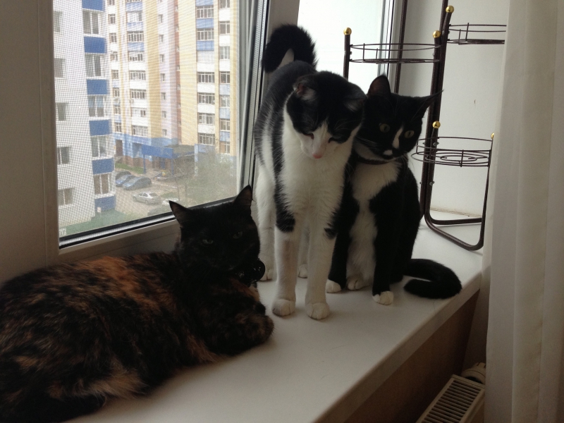 Все началось с того, что умер наш кот Том, который прожил с нами лет 14 наверно. Мы все смеялись, что он мой брат, вместе росли. Мы его с мамой похоронили и все, мол, кошек дома не будет, слишком тяжело с ними расставаться. Но потом мама увидела в группе Дай Лапу объявление о Чапе( это черно-рыжая, череп аховая, самая большая), тогда она котенком была, подобрана в подъезде. Взяли мы ее. Она очень гордая и манерная, сама по себе. Потом появилась Марго, типа на временную передержку, но осталась навсегда. Ее нашли на улице со сломанными лапами. Сперва Чапа ее била и в комнаты не пускала, а потом привыкла. Марго очень общительная и старается всем угодить, со всеми ласкается. Однажды я подобрала в подъезде трех крошечных котят, двоих раздала на авито, а третий, самый неказистый, так никому не приглянулся и остался. Это кот, Малек. Его били уже обе кошки. Зато сейчас дружбаны не разлей вода)) носятся втроем, ребенок их очень любит)) Шерсти много, а куда деваться, пылесосим, одежду чистим, не критично уж.