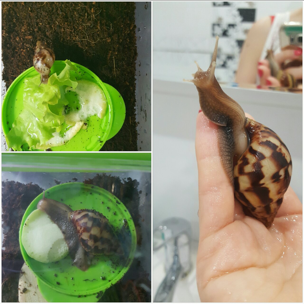 Kosha писал(а): Кошачий детеныш они у вас в аквариуме живут? а что на дне насыпано? как часто моете? запах есть от него? покажите фотку)) Купили пластиковый террариум, на крышке дырочки, но в нем грунт быстро сох, я затянула пленкой, и дырки сделала для вентиляции немного. Грунт использую кокосовый, в брикетах продают в зоомагазинах. Он твердый, его надо размочить, просушить немного и все. Они туда закапываться любят. Правда вот сменила в последний раз грунт, и не закапываются, места им мало становится. Хочу побольше купить емкость. Люди покупают пластиковые большие контейнеры прозрачные с крышкой, в хозмагазинах, дырки в крышке делают, и все ![]() Запах - я чую. Но я вообще на запахи остро реагирую, нюхач ![]() Мою террариум интуитивно ![]() ![]() Фотки потом прикреплю. Кстати, мы вырастили детку от наших улиток, с яйца. Случайно осталось одно в грунте, и она вылупилась. Теперь живет у сестры. Очень интересно с козявки выращивать ![]()
