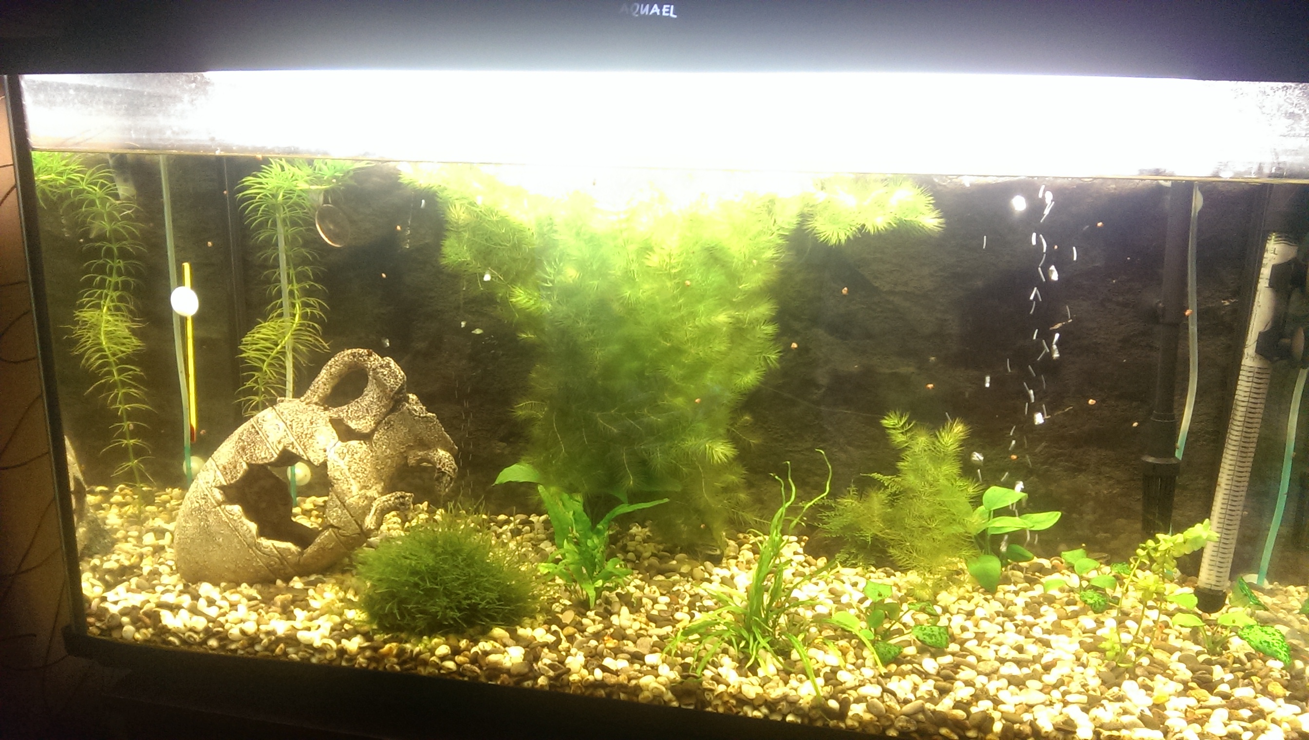 Маша, я глянула "ёлка" наша -это роголистник, наши питомцы её не едят, у нас мелкие рыбехи(сомиков отдали и "кильки" я не знаю кто они, но они чистят водоросли и стёкла аквариума) и они там в кустах прячутся днём. Посмотрела для гуппи можно такую водорослю, если гуппи родят, то там будут прятаться их мальки ![]()