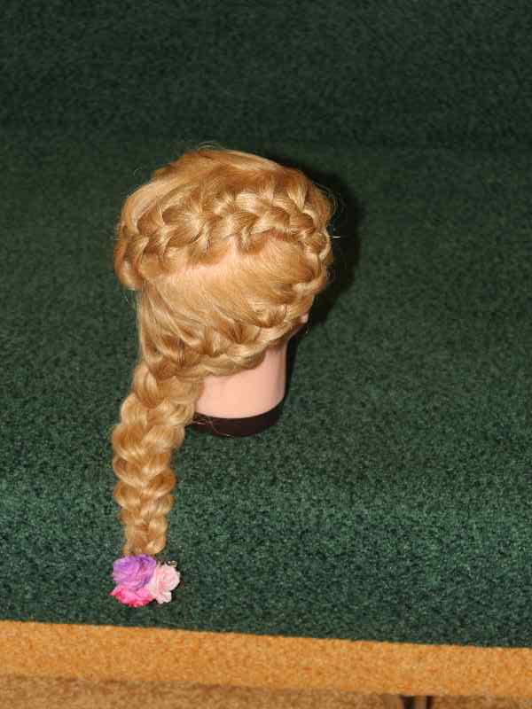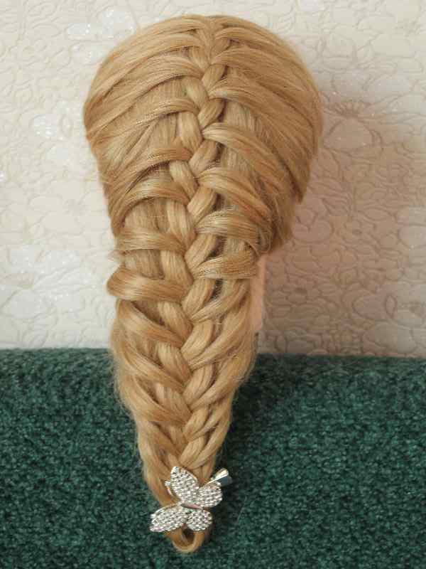 Мне тоже очень нравится заплетать всякие разные косички,косы, я приобрела себе болванку назвала ее Клавой,и начала свое обучение,конечно пока там сям торчит,короче пока как-то так