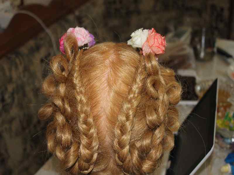 Вот эта по моему называется коса в виде двух цветков,не очень получилась