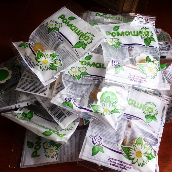 И причем не все которые похожи на советские сосет. Мы нашли ромашку, попробовали дать, она ей подошла))))) А их каждый месяц надо менять, так мы с мужем замучились потом их искать))))