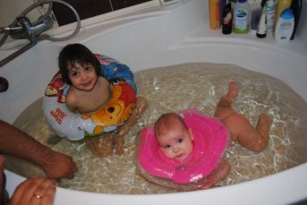 славные девочки у вас    вдвоем веселее плавать, мы своих тоже стали вместе сажать в ванну