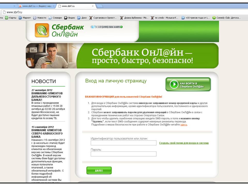 Сайт поддельный сразу не отличишь, там новости какие-то дибильные слева, давности в месяц или два, вверху телефон сбербанка 880055555550 и рядом значок скайпа. Короче попалась я, и по телефону колцентра банка мне сказали, что у них такое впервые, нострудом верется. А наши банковские сотрудники это вообще недоразумение, даже когда ты у них стоишь, они просят тебя звонить в колцентр потому что сами дать консультацию не могут