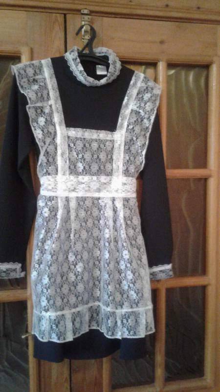 Платье+фартук+воротнички- манжеты. Дочь одевала 1 раз на линейку. Все в идеальном состоянии. Размер 44, цена 1500 руб за все или сдам напрокат(89224318537, Ольга)