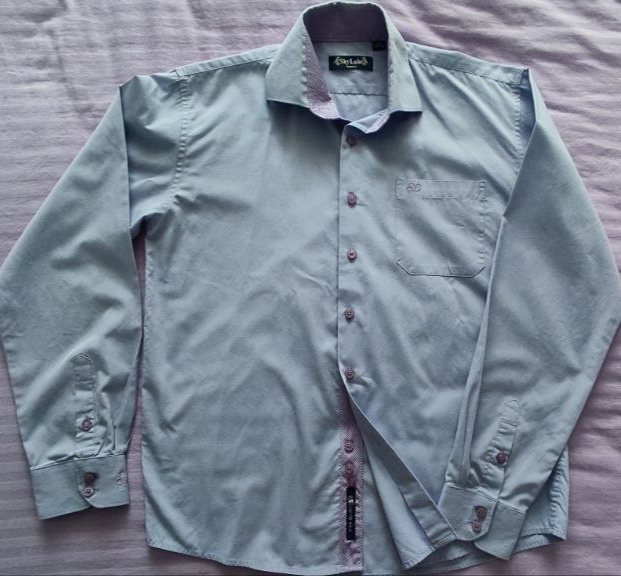 Состояние отличное! Ткань: 55% хлопок, 45% -[media][/media]полиэстер, благодаря ему практически не мнется Замеры: длина по спинке - 60см; длина плеча - 14 см; длина рукава сверху от плеча - 58см; ширина- 45см; Рубашка постирана и отглажена. 250р