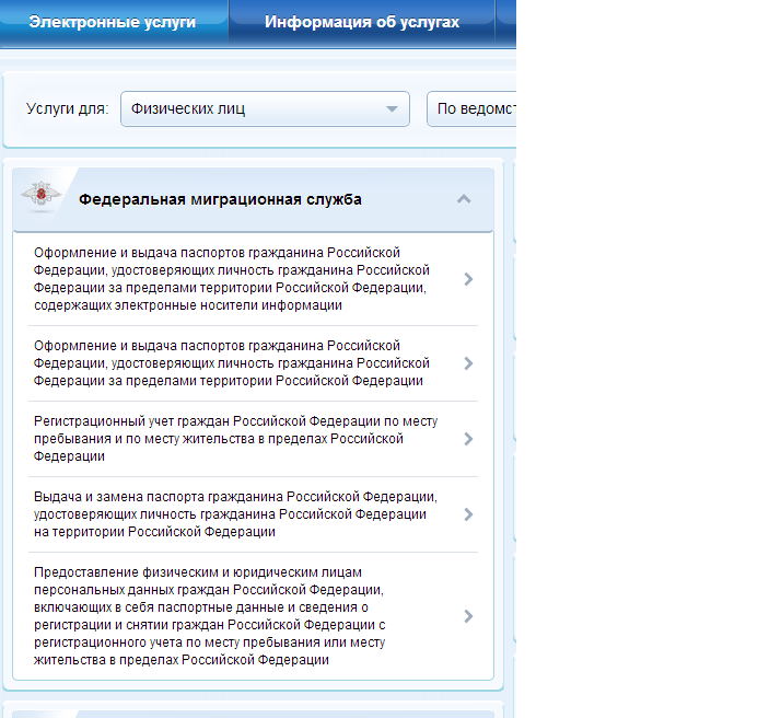 2. оформляются заграничные паспорта граждан РФ старого образца 3. оформляются и производится замена паспортов граждан РФ 4. производится регистрационный учет граждан РФ cвернуть наверх