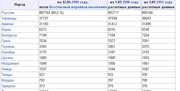 По Ставрополю статистика на 2011 г. Нашла по Сургуту: Цитата: Каждое полугодие управлением культуры, молодежной политики, туризма и спорта администрации Сургутского района проводится мониторинг межнациональных отношений в муниципальном образовании Сургутский район для исключения предпосылок возникновения конфликтных ситуаций между представителями различных национальностей, религиозных организаций и конфессий. Национальный состав населения в Сургутском районе составляют: русские - 56,8%, украинцы – 10,4%, татары – 8,32 %, башкиры – 3,42 %, белорусы 1,1 %, чуваши – 1,66 %, азербайджанцы – 2,47 %, чеченцы - 0,62 %, коренные народы севера 2,81 %, марийцы – 0,68 %, казахи – 0,63 %, другие – 11,09 %. Цитата: В районе на настоящий момент зарегистрированы и действуют 22 религиозные организации, в том числе: - 13 православных (количество активных прихожан – 1110 человек, количество прихожан по большим праздникам – 9370 человек), - 5 мусульманских (количество активных прихожан – 405 человек, количество прихожан по большим праздникам – 2050 человек), - 4 протестанских (количество активных прихожан – 155 человек, количество прихожан по большим праздникам – 255 человек). http://www.admsr.ru/prevention_of_terro ... /412/9745/ По ХМАО