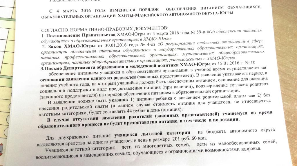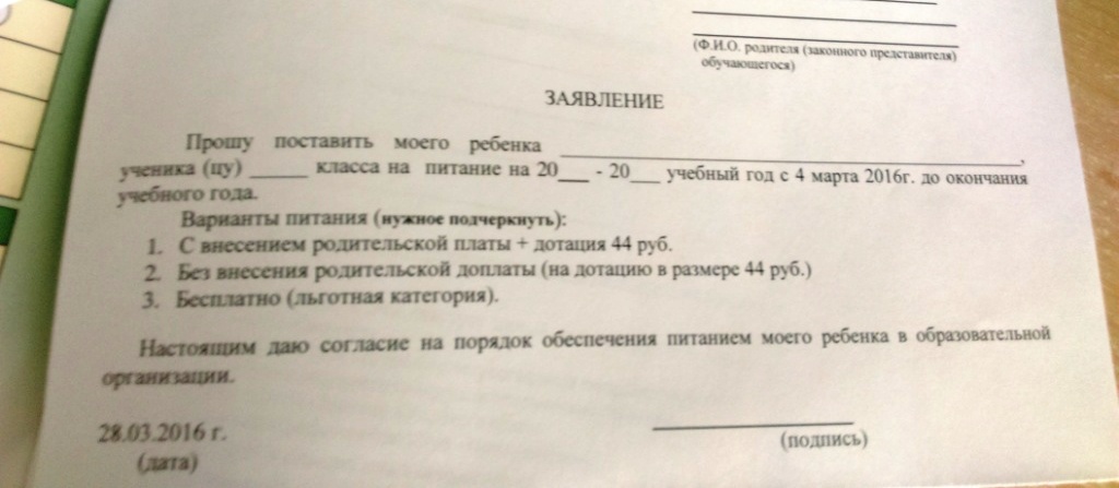 Klein писал(а): : 28.03.2016 14:29 Вот такую штуку принес сегодня ребенок. Только я не поняла,почему с 4 марта? март уже закончился почти... Постановление вышло 4 марта.сейчас проводится сбор заявлений, как чаще всего бывает, задним числом. получается теперь законодательно родителям предоставили право выбора типа питания: платно/по дотации. раньше выбор был весьма ограничен ◊ |