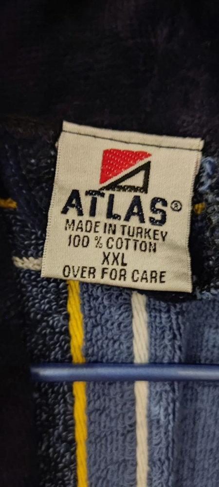 Новый, в упаковке махровый плотный 100% хлопок. Без капюшона, два кармана, пояс. Очень удобный и приятный для тела. Размер XXL. Замеры на фото. Есть видео. Отдам за 1950р.