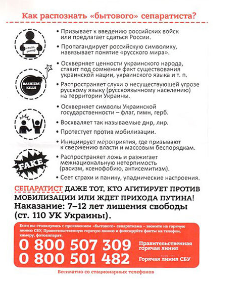 злая Я писал(а): : 19.04.2015 15:24 в Одессе листовки раздавали ужас ужасный, и в это как можно поверить? "все кто говорят о несуществующей угрозе русскому языку и русскоязычному населению..." все сепаратисты! да уже русскоязычное население боится рот открыть наверно а у них угроз не существует ![]()  |