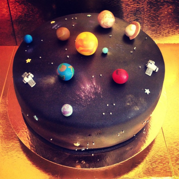 Начиталась я отзывов и решила сыну на день рождения заказать торт у Екатерины Гасановой. Красотень и вкуснотень! Брала карамельные коржи и творожно-сливочный крем и Катя предложила еще добавить персики. Очень вкусно, мягко и приятно :) А так как сынуля у меня сейчас космосом увлекается Екатерина закатала торт в космическую мастику с планетами. Ребенок был в восторге, да и взрослые тоже.