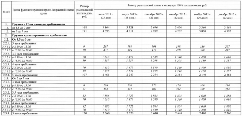 Perfection писал(а): Моё мнение (обывательское) -цифра завышена. Если за частные сады, плата 15-20 тысяч.Но ведь там ещё аренда помещения, а это не малая сумма и прибыль должна остаться, меценатов нет у нас. цифры совершенно реальные, нас (родителей в Мегионе) ознакамливали с положением о стоимости содержания. посмотрите мегионское Приложение о стоимости содержания ребенка в саду от 12 года. С тех пор род.плата выросла на 1300р и составила 3550. Если 3550 - это в среднем 20% от полной стоимости путевки, то полная плата примерно = 17750. А что касается платы по дням, то опять же в Мегионе в дошкольных группах на базе школ давно уже расчет платы велся по дням за питание. бывало и по 5 с лишком тысяч платили в "длинные" месяцы.
