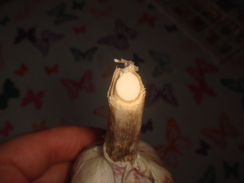 Латифа писал(а): :17 сен 2015, 12:44 №5219 Зануда писал(а): источник:17 сен 2015, 13:42 №5218 И что получили с покупного чеснока? зелень и небольшие головки ______________ Латифа писал(а): :17 сен 2015, 12:47 №5220 Зануда писал(а): источник:17 сен 2015, 13:42 №5218 яровой или зимний зимний, по фото в инете глянула У ярового и зимнего чеснока разные сроки уборки. Вот поэтому я спрашиваю. У тебя чеснок сидел в земле почти год и ты получила небольшие головки. Зимний чеснок, на подзимней посадке по-любому даст хорошую крупную головку. Ни разу не было небольших , мелких головок. А вот у ярового были, и только потому что я его выкапывала в неправильные сроки. Зимний отличается не цветом, как некоторые пишут в интернете, а стволиком (см фото) посередине у него жесткий стволик., Вложение: А у ярового он тонкий мягкий , состоит из чешуек. И зимний не только как пишут сиреневый или фиолетовый по цвету чешуек, у меня и белый зимний есть. Чеснок высаженный в октябре, рядом ранетка для масштаба. Высаженный в мае показывать не буду, мы его съели и он у меня идет на консервацию. Его я даже не очищаю. Мою снимаю верхнюю чешую и разрезаю на части поперек. зимний идет на еду зимой и на посадку.