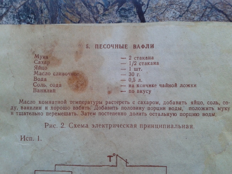 Для электровафельницы. Это - рецепты к электровафельнице 80-хх годов, вернее, из книги рецептурной этих лет.