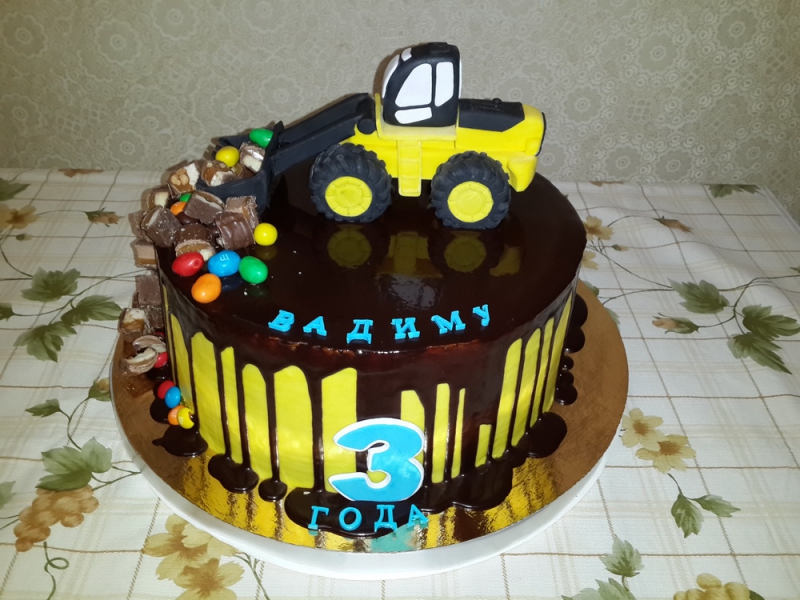 Девочки, я с новым тортиком «Трактор», делала сыночку.