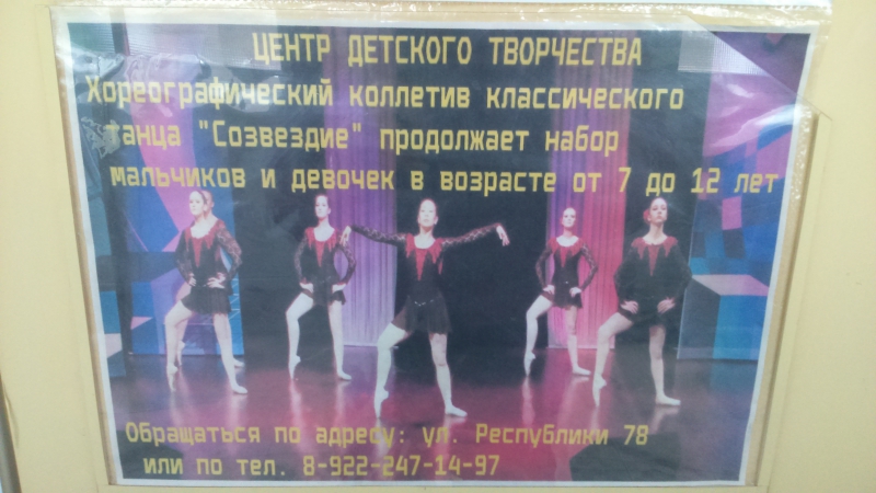 С 1 октября в ФОК "Нефтяник " по адресу ул. Энтузиастов 47а, набирают деток 5-7 лет на бальные танцы, принимают всех желающих. Ходила с дочкой в прошлую субботу- ребенку очень понравилось. тел. для записи 41-53-36