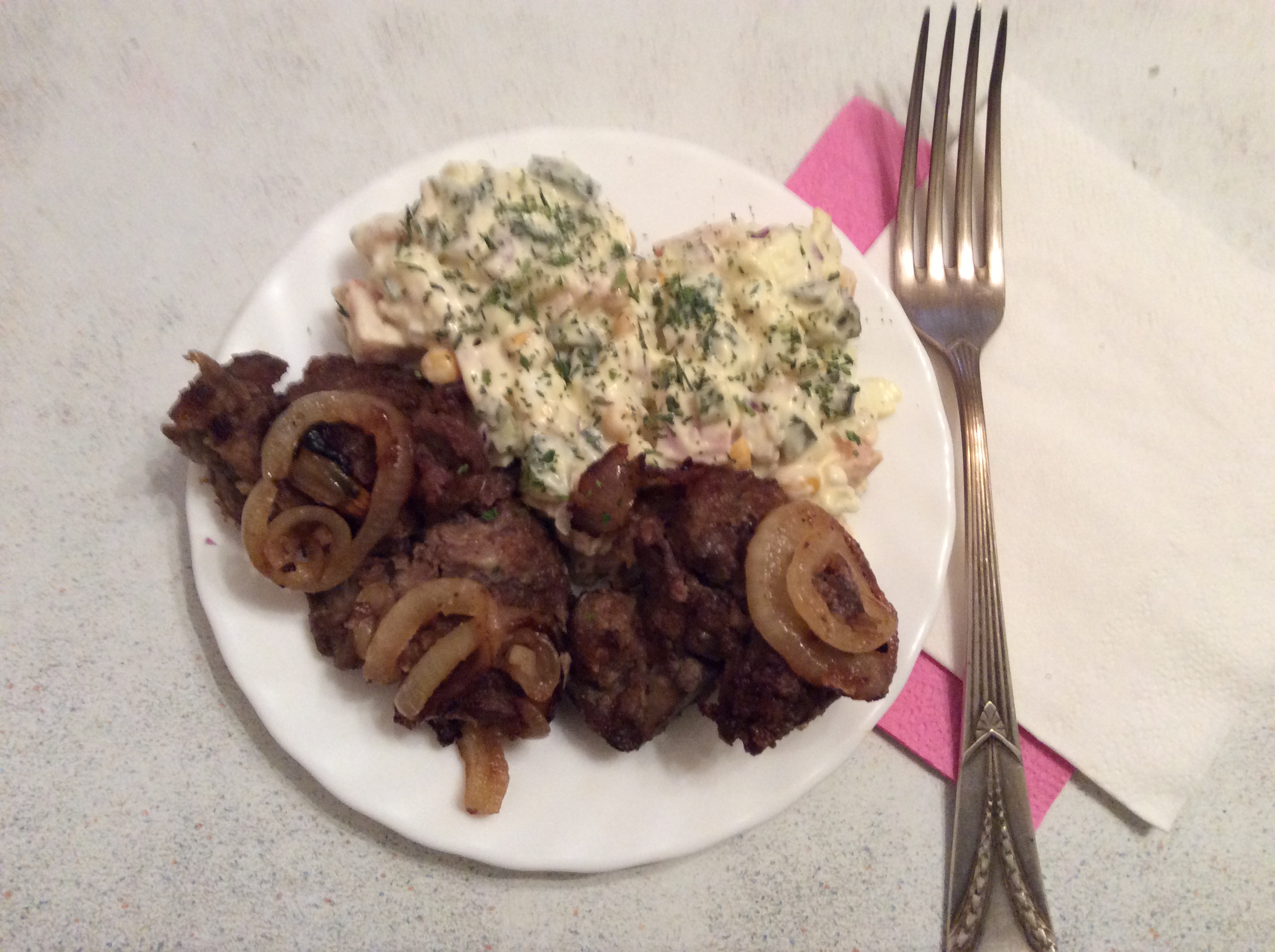 Грудинка запеченая и салат с крабовыми палочками
