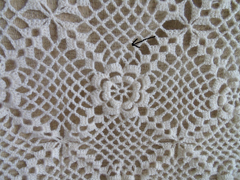 Решила я с платьями пока повременить... Начала вязать шазюбль по мотивам синего платья.. А чтоб хорошо сидел, квадраты придумала к низу увеличивать на один ряд. Долго думала, как их совместить, в итоге вот (с одной стороны пропускаю одну арочку)