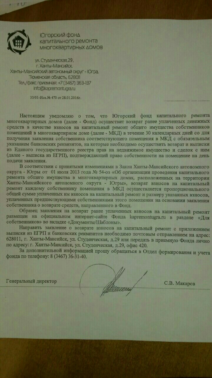 "Об организации проведения капитального ремонта общего имущества в многоквартирных домах, расположенных на территории Ханты-Мансийского автономного округа - Югры" http://www.rg.ru/2013/07/19/hmao-zakon54-reg-dok.html http://kapremontugra.ru/ http://kapremontugra.ru/index.php/for-owners/questions Часто задаваемые вопросы Выставляемый в ежемесячных квитанциях счет может отличаться у жителей разных домов – для определения суммы ответственные структуры используют следующие данные: Развернуть/свернутьВозраст постройки. Само собой, что для ремонта дома, сданного в прошлом году, не требуется собирать большую сумму. И наоборот – для дореволюционных построек размер взноса, логично, будет выше.