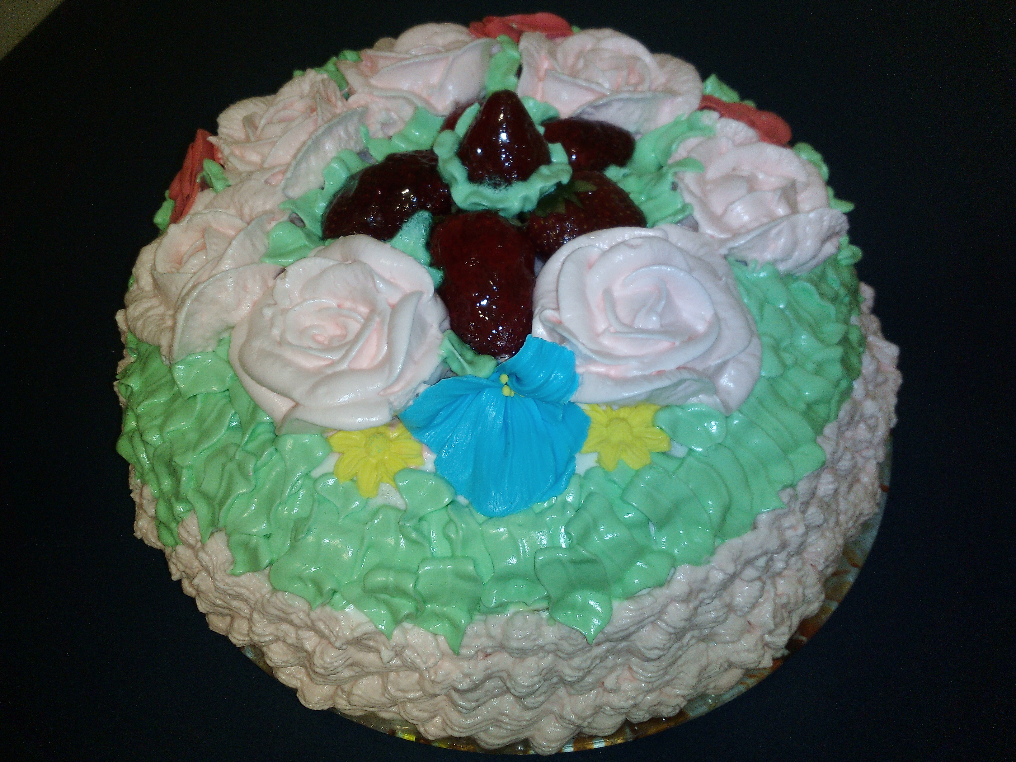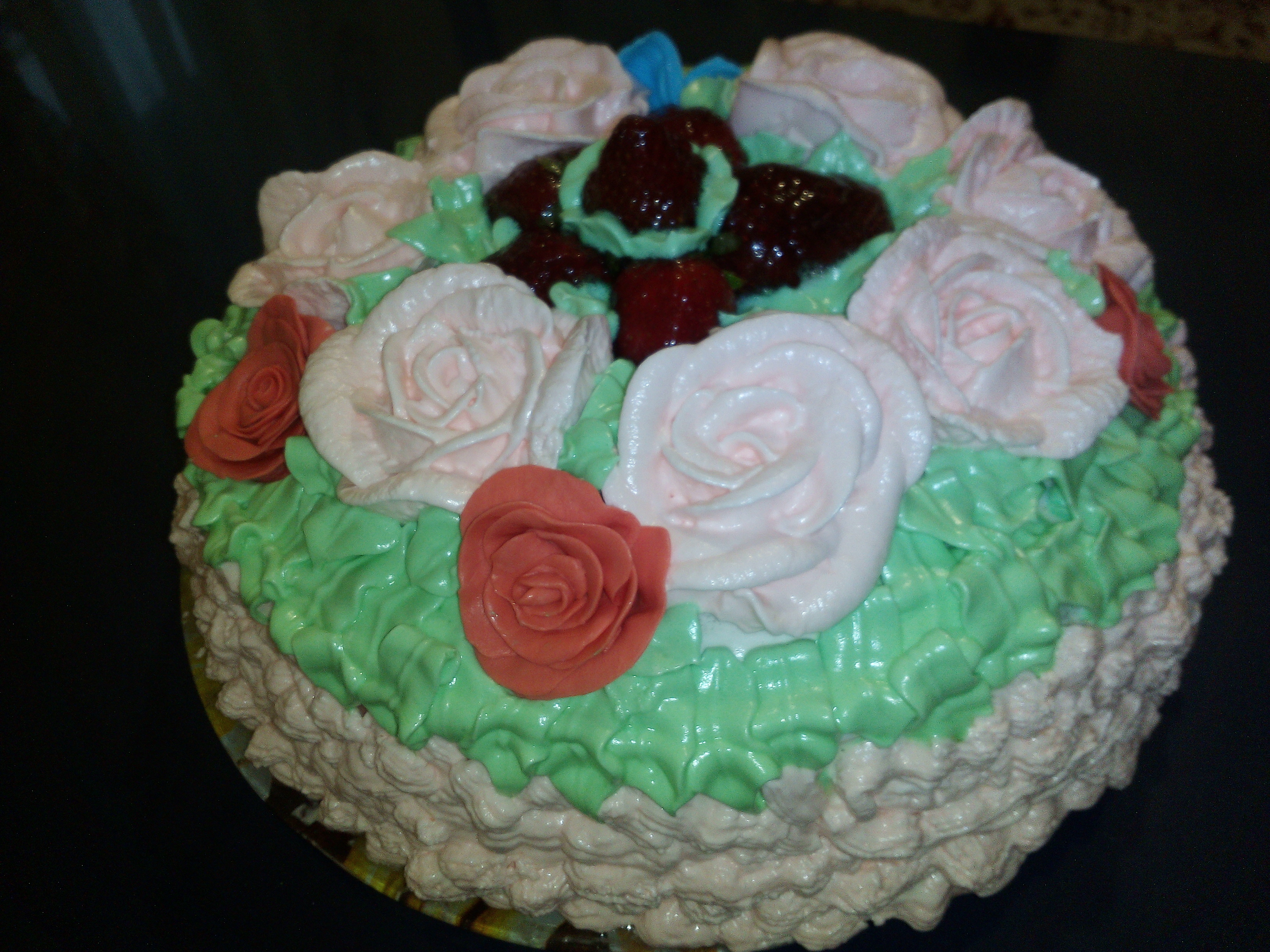 Обновлю темку. Делала торт маме на день рождения. Решила в первый раз украсить кремом и намучилась, конечно