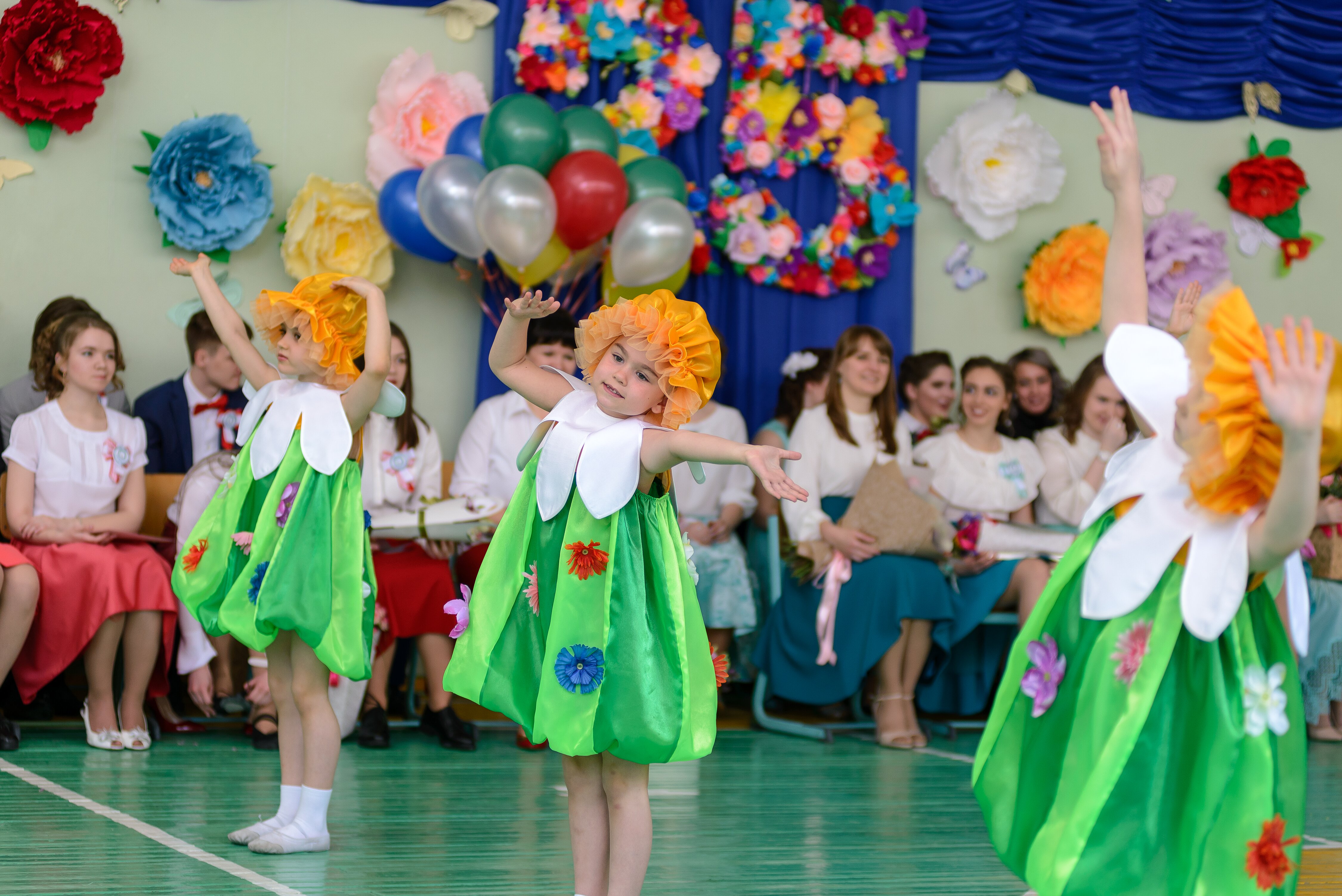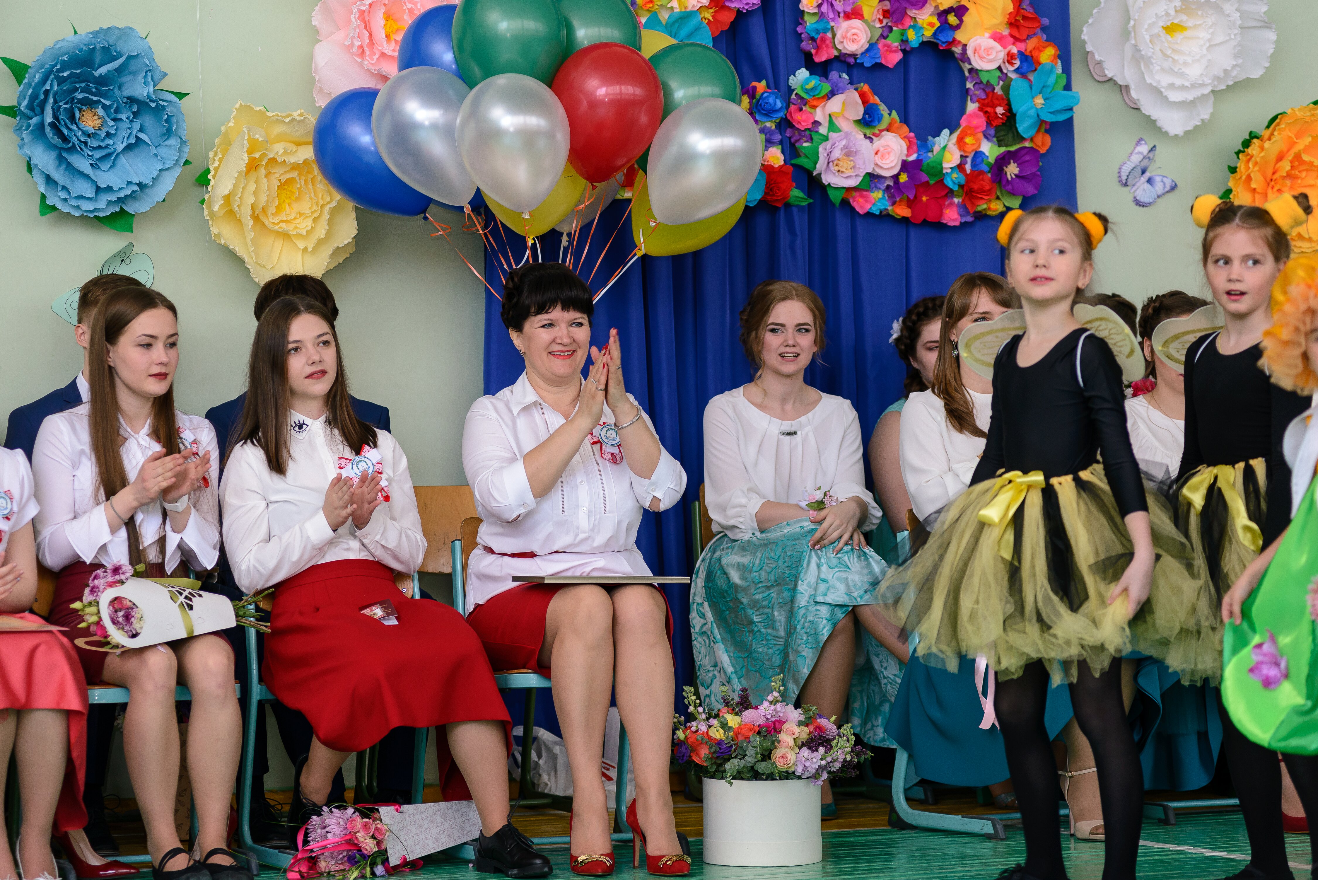 Хочу добавить, что вся атрибутика, украшение зала, все сделано руками мам и пап. Весь стиль оформления торжественной линейки, и одежды, а также сценарий и участие в съемках клипа-задумка родителей выпускников.