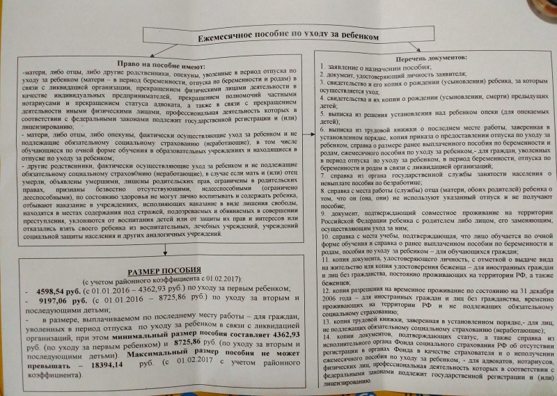 Я вчера была в соц.службе на мира на консультации, взяла там буклеты, вечером если не забуду, то сфотографирую информацию по выплатам, там суммы есть на этот год и список документов.