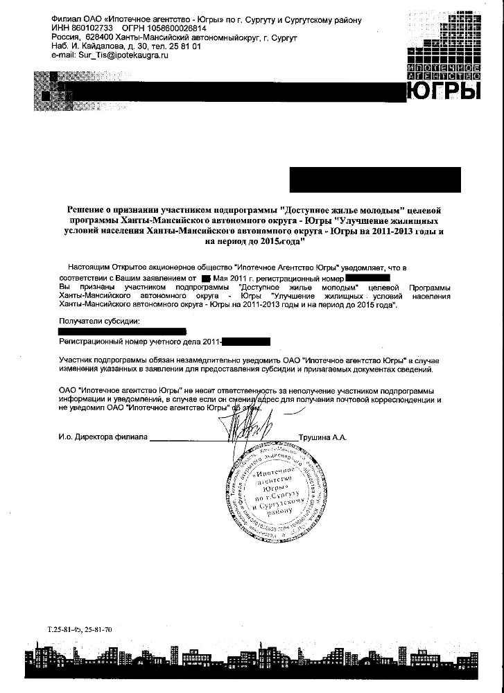 источник: 20.04.2012 10:03 Уважаемый ugra_report! Пожалуйста, поясните доступно: если на момент выплаты субсидии (т.е. спустя 2-3-4 года после постановки на учет, как очередь подойдет) одному из супругов будет больше 36 лет, семья получит субсидию или нет? Оксана, добрый день! Все зависит от того в каком году встали в очередь на получение субсидии. Согласно условиям истекшей подпрограммы, реализуемой по Закону ХМАО №103-оз от 11.11.2005 года, возраст супругов 35 лет зафиксирован НА ДАТУ ПОДАЧИ ЗАЯВЛЕНИЯ О ПРЕДОСТАВЛЕНИИ СУБСИДИИ, т.е. при условии заключения сделки, поскольку обязательным условием для предоставления субсидии является наличие договора на приобретение жилого помещения. А по условиям новой целевой программы на 2011-2013 года, возраст супругов не должен превышать 35 лет НА МОМЕНТ ПРИНЯТИЯ РЕШЕНИЯ О ПРЕДОСТАВЛЕНИИ СУБСИДИИ (ЕЕ ВЫПЛАТЕ), и условиями новой программы субсидия предоставляется участникам подпрограммы «Доступное жилье молодым» строго в порядке очередности вне зависимости от наличия совершенной сделки. При достижения предельного возраста участники подпрограммы снимаются с учета. Таким образом, если Вы встали в очередь до 01.01.2011 года, Вы получите субсидию вне зависимости от возраста, а если после 01.01.2011 года, то Вы не сможете получить субсидию, если одному из супругов исполнится 36 лет. С уважением, команда Губернатора Югры