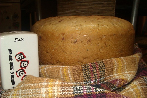 а мы испекли первый хлеб!вкусный,но какой-то плотный...