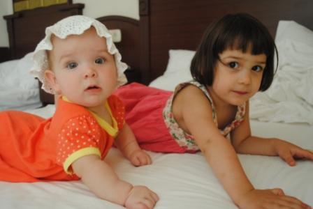 Разница между девочками есть. Только у меня старшая ранняя. И переворачиваться раньше начала и сидела уже в 5,5 месяцев. А Ксения с ленцой немножко, ей бы только на ручках или в слинге и ничего больше не надо. |
