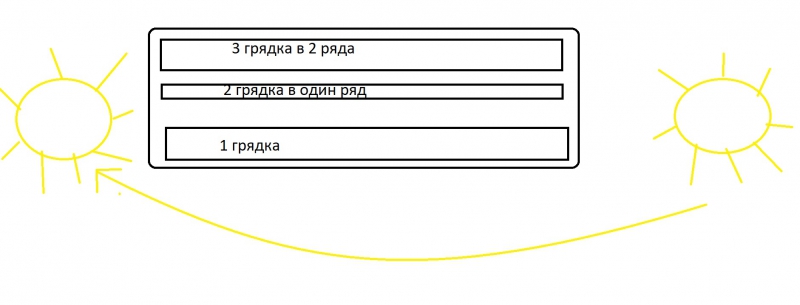 Знаю, что в идеале разные теплицы для томатов и огурцов, но у меня одна и первый раз имеем три грядки, первая под перцы и т.п - низкорослые культуры.. и есть две грядки еще - средняя узкая, в нее посадка в один ряд однозначно.. и третья - шире, в ней посадка в два ряда.. солнце идет по схеме, т.е светит с одной стороны. муж говорит, что это не имеет значения, но все же.. куда мне томаты и огурцы? какую культуру во 2 ряд , а какую в 3й? рассады перебор, ее хватит и в один и в два ряда ![]()