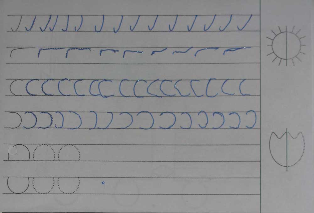 обычно после урока выходит учитель и говорит что было на уроках, показывает работы детей)))) мы тихо ржем и отдаем их назад, потом раздает домашнее задание на закрепление темы)))) это по последнему уроку фотки)))) тема горизонтальые, вертикальные и наклонные линии. понятия правый верхний угол, левый верхний, нижний левый и т.д., центр... что такое радуга и как запомнить последовательность цветов... (дома с родителями найти запоминалку) поиск одинаковых и исключение непохожих объектов, цифры, палочки и закорючки)))) периодически надо дорисовать вторую зеркальную часть предмета (например левая половина звезды уже нарисована, остальную часть ребенок должен сам дорисовать глядя на первую) рассказать что такое дружба и выучить стихи, пословицы и поговорки на эту тему...