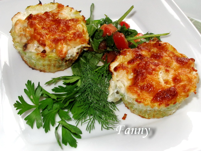 ![]() Ингридиенты на 4 порции (8 корзинок): •кабачок средний (500г) – 1 шт. •куриное филе – 200г •яйцо куриное – 1 шт. •сыр тертый – 50г Приготовление: Кабачок очистить и потереть на крупной терке, отжать от жидкости, добавить взбитое вилкой яйцо, посолить, перемешать. Куриное филе порезать мелким кубиком, обжарить на сковороде в растительном масле, посолив, минут 5. Кабачковую массу распределить по дну и стенкам порционных формочек для запекания,
