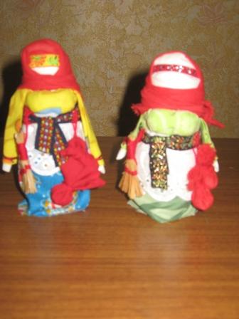 Коляда.С Колядой проходили все рождественские колядки. Эта кукла - символ солнца и добрых отношений в семье. Она представляла собой дородную женщину, одетую во все новое и нарядное. От ее имени колядующие желали счастья и благополучия. Пели радостные, прославляющие хозяев песни. Масстер класс брала из интернета. Основа у "жёлтой" скрутка,у "зелёной"-берёзовое полешко.
