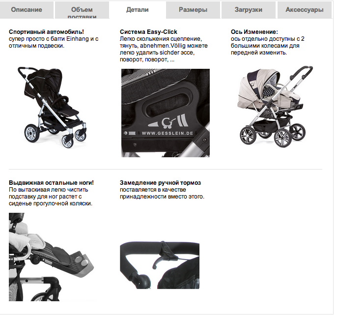 Вложение: Преимущества 1. Вся разбирается по частям, поместится в любую машину(багажник), лифт. Поместилась в ящик кровати 2. Легкая 11,4 кг., компактная, узкая поширине. 3. Ручка регулируется под любой рост. 4. Маневренная. 5. Место под ноги регулируемое по высоте и расширяемое. 6. Большой капюшон, который частично снимается, для летнего варианта(остается сетка). 7. Несколько положений спинки 8. Легко снять верхнюю часть(в один клик), и перевернуть, чтобы изменить направление люльки(от себя или к себе). 9. Совместимость с с автокреслом Maxi Cosi. 10. Мягкие 5-точечные ремни. 11. Ооочень легко складывается, одним нажатием\поворотом. Приобретала отдельно полужесткую люльку. Люлька трансформируется в конверт, а так же складывается в плоское состояние. Очень удобная, внутри мягкая. Надежно крепится к коляске. Вложение: Здесь есть доп. инфо, кого заинтересует http://www.gesslein.de/kinderwagen-f4.html, http://forum.materinstvo.ru/index.php?showtopic=1601277