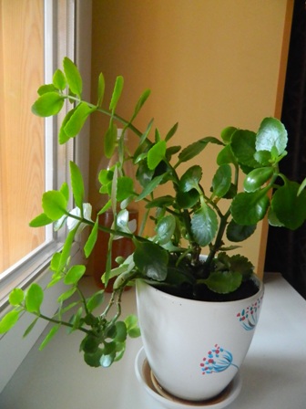 а посмотрите мой каланхое. Какой то он у меня кривой весь. может его подрезать как-нибудь. он у меня так сильно вырос. Хочу еще заставить его цвести (он у меня летом так долго цвел), как его заставить?