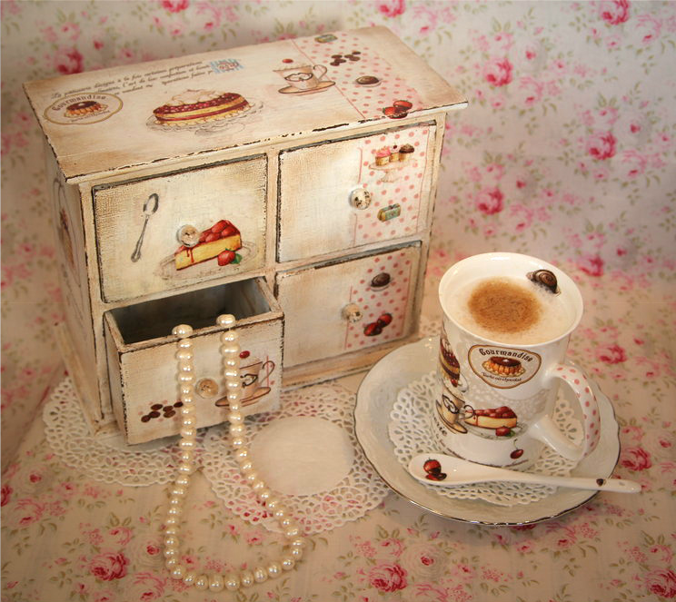 Девочки, вот недавно тоже увлеклась декупажом))) Комодик в стиле шебби