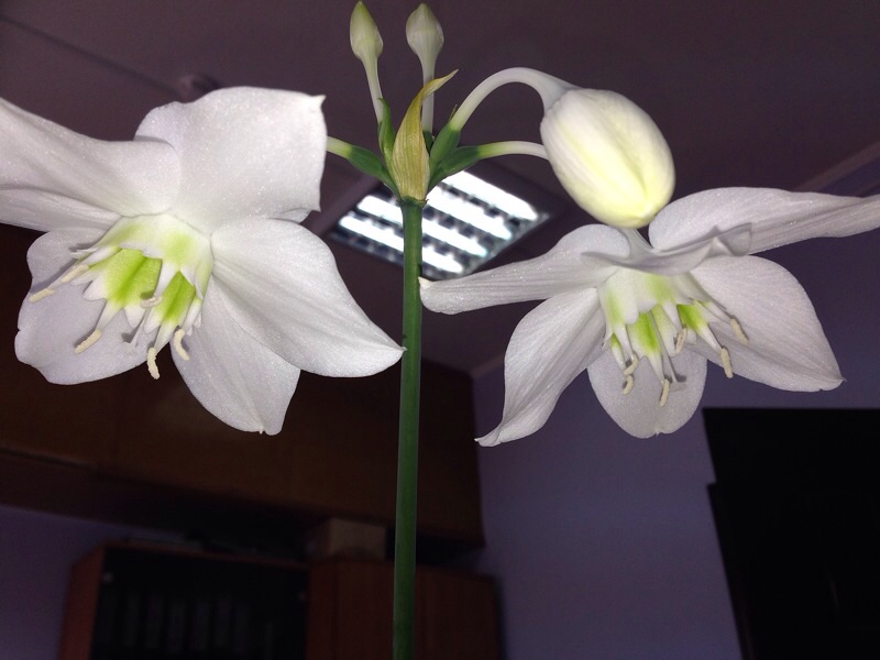 2 года уже. Но 1.5 года назад оно чуть не погибло, остался только 1 листик, даже половина. Делала типа теплички из целоф. мешка, ставила под лампу, после этого набрало несколько листьев, цвел несколько месяцев назад. А теперь вот еще 2 стрелки выпустил, а с листьями все равно не густо.