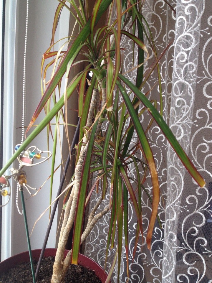 Лена, мне кажется твоей драцене все равно терять уже нечего. .. Отреж ответвления ( на фото не совсем понятно сколько их) я бы только самую мелкую не трогала. Она вроде приличная еще. Из ствола пойдут листики, быстро. А обрезаные столики укорени и подсади к старому стволу в горшок. Про укоренение драцены почитай в интернете , кто то в воду ставит, кто то сразу в землю. Ты давно ее пересаживала,горшок по объему большой? Если ее кот на окне не достает пусть там и стоит. Потому что пока он ее не съест ,он не успокоиться. А вообще ,чего это ты ее так довела ![]() У меня кот уронил драцену с окна у нее обломальст ответвления,но потом довольно быстро ,она пустила новую зелень на этом пеньке.