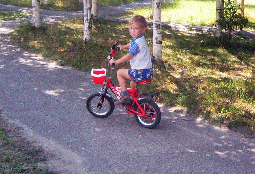 Павлик научился кататься на двухколесном велике почти в 5 лет, после самоката, на лыжах катался немного в 4 года, но трусил на горках.